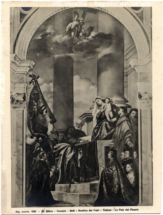 - ISCRIZIONI sul recto: in basso - Rip. vietata. 1928 - O. Böhm - Venezia - 3548 - Basilica dei Frari - Tiziano - La Pala dei Pesaro - fotografica -