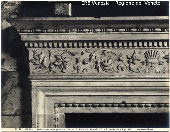 - ISCRIZIONI sul recto: in basso - 22787 - VENEZIA - Trabeazione della porta del Coro di S. Maria dei Miracoli - P. e T. Lombardo - Ripr. int./ Anderson Roma - fotografica -