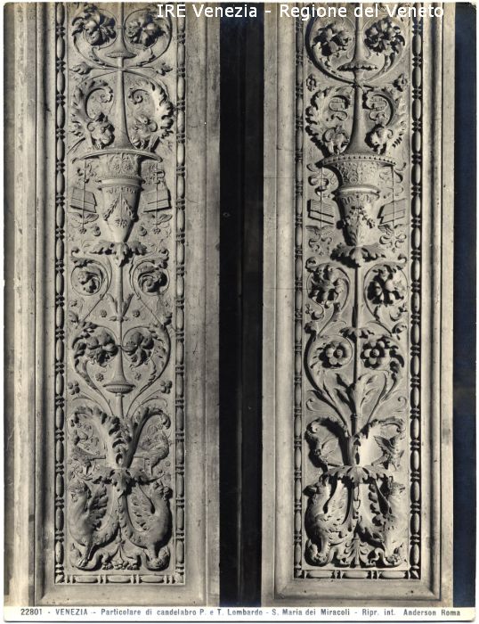 - ISCRIZIONI sul recto: in basso - 22801 - VENEZIA - Particolare di candelabro P. e T. Lombardo - S. Maria dei Miracoli - Ripr. int. Anderson Roma - fotografica -
