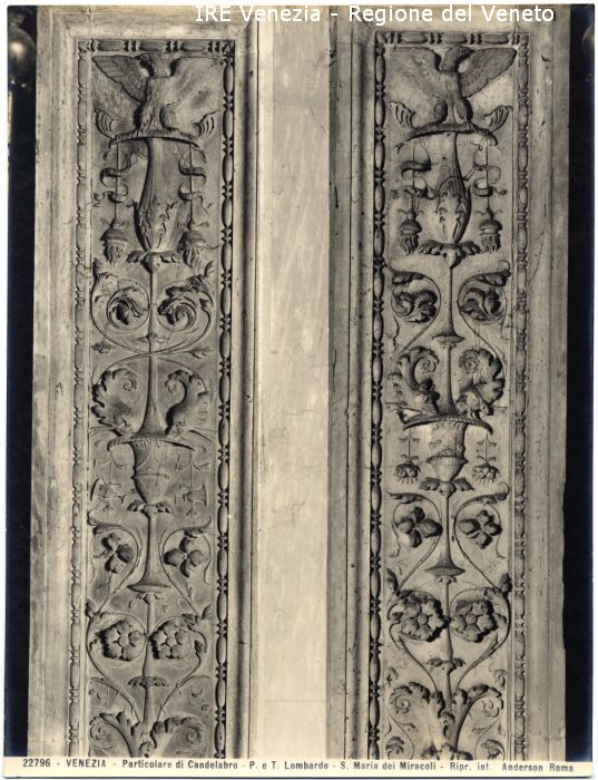 - ISCRIZIONI sul recto: in basso - 22796 - VENEZIA - Particolare di candelabro - P. e T. Lombardo - S. Maria dei Miracoli - Ripr. int. Anderson Roma - fotografica -