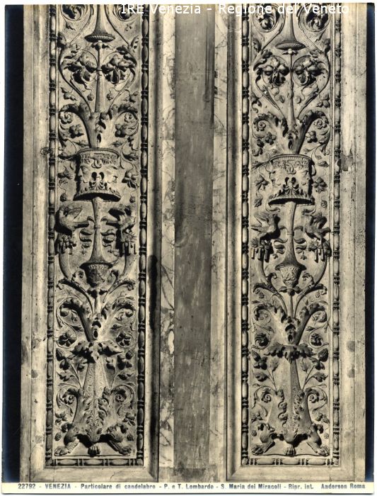 - ISCRIZIONI sul recto: in basso - 22792 - VENEZIA - Particolare di candelabro - P. e T. Lombardo - S. Maria dei Miracoli - Ripr. int. Anderson Roma - fotografica -