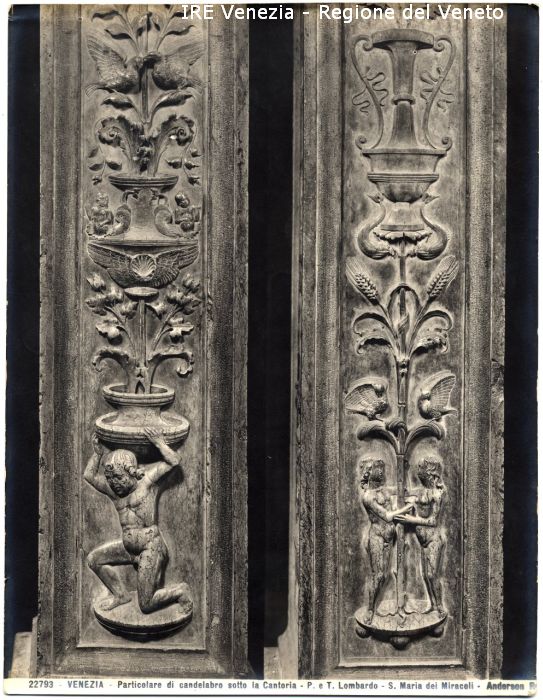 - ISCRIZIONI sul recto: in basso - 22793 - VENEZIA - Particolare di candelabro sotto la Cantoria - P. e T. Lombardo - S. Maria dei Miracoli - Ripr. int. Anderson R - fotografica -