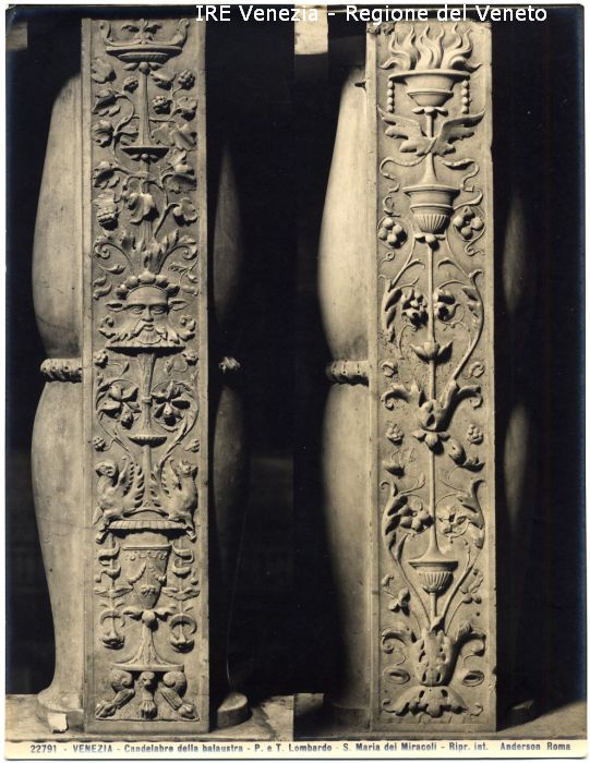 - ISCRIZIONI sul recto: in basso - 22791 - VENEZIA - Candelabro della balaustra - P. e T. Lombardo - S. Maria dei Miracoli - Ripr. int. Anderson Roma - fotografica -
