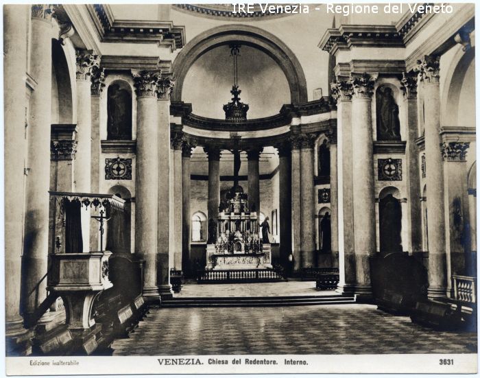 - ISCRIZIONI sul recto: in basso - Edizione inalterabile./ VENEZIA. Chiesa del Redentore. Interno./ 3631 - fotografica -