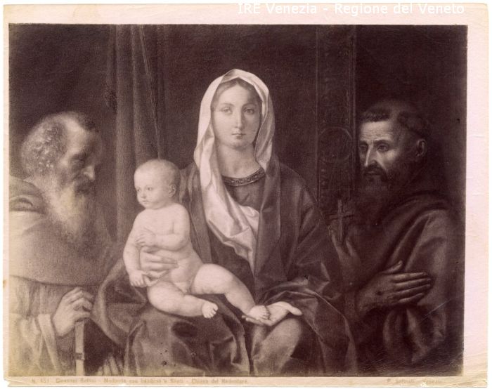 - ISCRIZIONI sul recto: in basso - N. 451 - Giovanni Bellini - Madonna con Bambino e Santi - Chiesa del Redentore/ P. Salviati Venezia - fotografica -