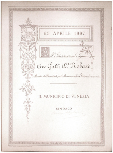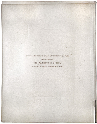 - NOTIZIE STORICO CRITICHE L'esecuzione delle fotografie contenute nell'album venne affidata allo Stabilimento C. Naya (o Ditta C. Naya) e realizzata da Tomaso Filippi (1852-1948). Filippi, entrato a far parte della ditta nel 1870 ne divenne il direttore nel 1882, in seguito alla morte di Carlo Naya, durante la proprietà della vedova Ida Lessiak. Filippi mantenne l'incarico fino al 1895, anno in cui decise di aprire in proprio un negozio prima in Piazza San Marco, al civico 61 delle Procuratie Nuove, poi nella Piazzetta dei Leoncini [Divari M. 2009-2010: 40-42].