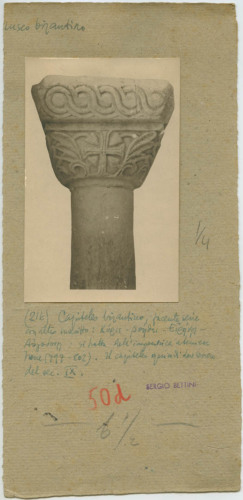 - ISCRIZIONI supporto primario: verso: in alto a sinistra - MUSéE BYZANTIN D'ATHéNES/ 216. UN DRAPITEAUX DU IX S. - a matita - francese