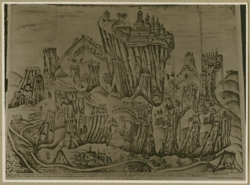 Meteore: I monasteri secondo un'incisione del 1882 I monasteri delle Meteore secondo un'incisione di Policarpo Ramo (1882).
