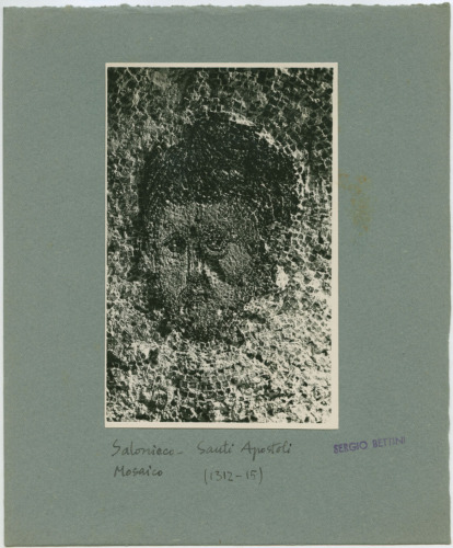 - ISCRIZIONI supporto secondario: recto: in basso al centro - Salonicco. Santi Apostoli/ Mosaico della Dormizione. Particolare./ (1312 - 15) - a matita -