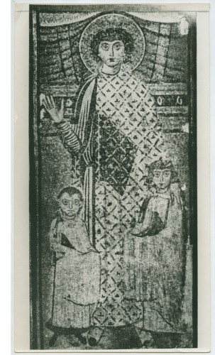 Basilica di S. Demetrio a Salonicco. Mosaici del VII sec. S. Demetrio. Salonicco. S. Demetrio. - Mosaici. S. Demetrio e i due fanciulli (dopo il 634)