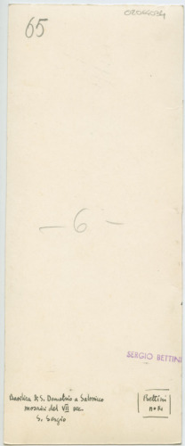 - ISCRIZIONI supporto primario: verso: in basso a sinistra - Basilica di S. Demetrio a Salonicco/ Mosaici del VII sec./ S. Sergio - a matita -