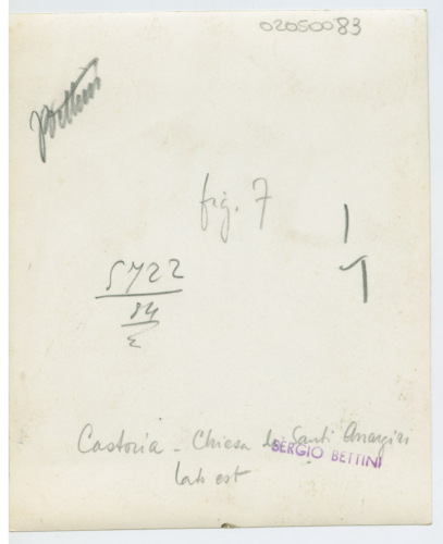 - ISCRIZIONI supporto primario: verso: in basso al centro - Castoria. Chiesa dei Santi Anargiri/ lato est. - a matita -