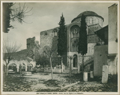 - ISCRIZIONI supporto primario: recto: in basso al centro - (Ed.ne Alinari) N.º 24683. DAPHNI - Grèce. Vue de l'Église et du Monastère. - a matita - francese