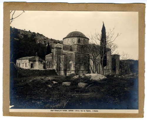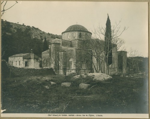 - ISCRIZIONI supporto primario: recto: in basso al centro - (Ed.ne Alinari) N.º 24684. DAPHNI - Grèce. Vue de l'Église, l'Abside. - a matita - francese