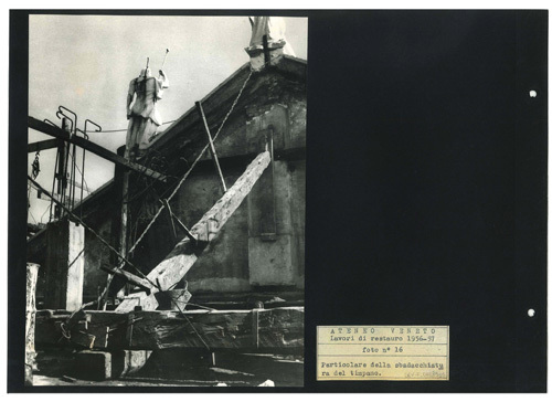 Ateneo Veneto Lavori di restauro 1956-57: foto n° 16: Particolare della sbadacchiatura del timpano.