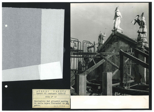 Ateneo Veneto Lavori di restauro 1956-57: foto n° 17: Esecuzione dei pilastri montanti della trave Vierendel in progetto.