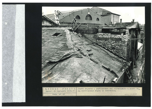 Ateneo Veneto Lavori di restauro 1956-57: foto n° 25: Nuovo coperto - particolare del rifacimento a nuovo della costruzione sopra il corridoio.