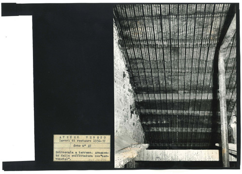 Ateneo Veneto Lavori di restauro 1956-57: foto n° 37: Sottoscala a terreno. Armamento della soffittatura con nervometal.