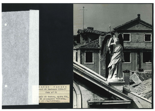 Ateneo Veneto Lavori di restauro 1956-57: foto n° 61: langelo di destra, opera firmata di Alessandro Vittoria, colle ali ripristinate.