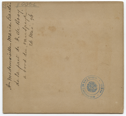 - ISCRIZIONI supporto secondario: recto: in alto a destra - Souvenir du 19 Mai - 96. - a matita - francese