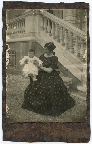 Donna con neonato in braccio
