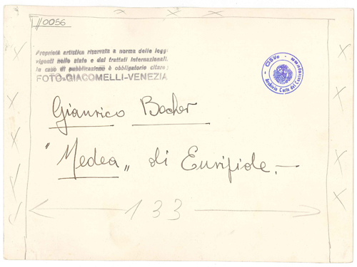 - ISCRIZIONI supporto primario: verso: al centro - Gianrico Becher/ "Medea" di Euripide. - - a matita -