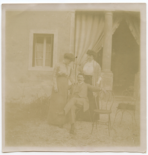 Carlo Pasinetti e Maria Ciardi in giardino con un'altra donna