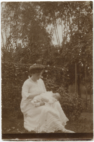 Maria Ciardi in giardino con Francesco Pasinetti neonato