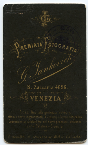 - ISCRIZIONI supporto secondario: recto: in basso - G. JANKOVICH VENEZIA - a matita -