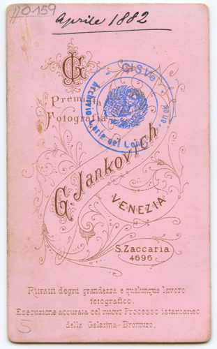 - ISCRIZIONI supporto secondario: recto: in basso - G. JANKOVICH VENEZIA - a matita -
