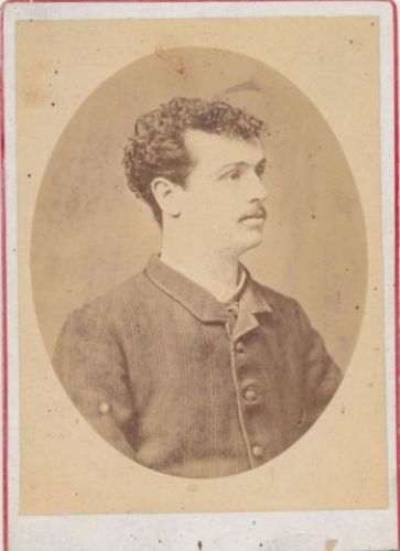 Giovane uomo con baffi e capelli scuri e ricci