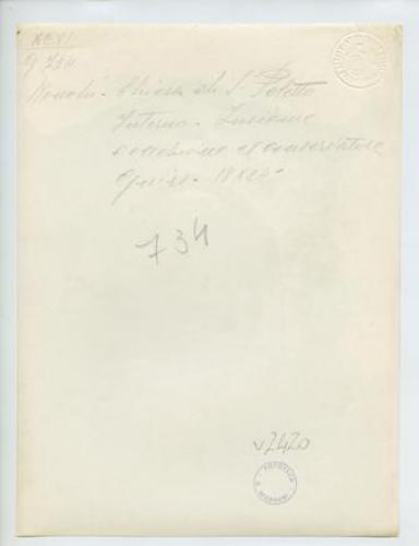 - NOTIZIE STORICO CRITICHE La fotografia fa parte dell'insieme archivistico denominato "Venezia Giulia" (tre cartelle: V. VIII, V. IX, V. X), nello specifico, è conservata all'interno della cartella V. IX. La fotografia faceva presumibilmente parte di un nucleo di documenti appartenuti ad Anton Gnirs (1873-1933), il quale, dal 1902, ricopriva il ruolo di Conservatore della Commissione per l'Arte e la Conservazione a Vienna e, nello specifico, per il territorio dell'attuale Istria.