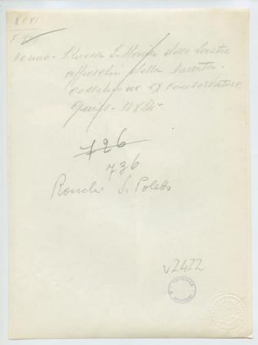 - ISCRIZIONI supporto primario: verso: in alto al centro - Ronchi - S. Poletto - a matita -