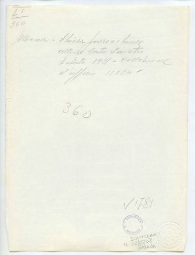 - NOTIZIE STORICO CRITICHE La fotografia fa parte dell'insieme archivistico denominato "Venezia Giulia" (tre cartelle: V. VIII, V. IX, V. X), nello specifico, è conservata all'interno della cartella V. VIII. E' stata realizzata nell'estate del 1921 da Pietro Opiglia, che dal 1908 al 1947, svolse il ruolo di fotografo presso il Museo Civico triestino e del quale si serviva l'Ufficio Belle Arti della Venezia Giulia durante le proprie campagne fotografiche. In questo caso, l'Ufficio Belle Arti aveva promosso una campagna ricognitiva circa le opere d'arte presenti sul territorio transfrontaliero che oggi comprende il Friuli Venezia Giulia, la Croazia e la Slovenia. Si ricorda, inoltre, che Antonio Morassi svolse il ruolo di funzionario sovrintendente presso l'Ufficio Belle Arti della Venezia Giulia dal 1920 al 1925.