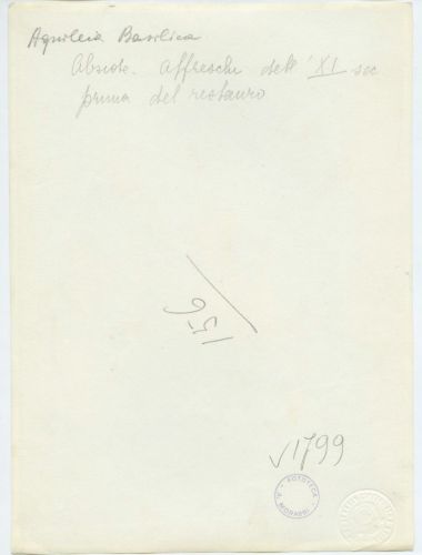 - ISCRIZIONI supporto primario: verso: in alto al centro - Aquileia Basilica/ Abside - affreschi dell'XI sec/ prima del restauro - a matita -