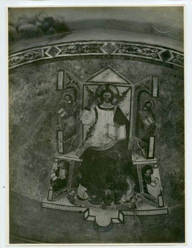 Aquileia - Basilica, affresco dell'abside laterale destra, Cristo in trono (dopo il restauro). Primavera 1921