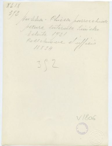 - ISCRIZIONI supporto primario: verso: in basso al centro - Auzza - Chiesa parrocchiale/altare laterale sinistro/ Estate 1921/ collezione d'ufficio/ 18x24 - a matita -