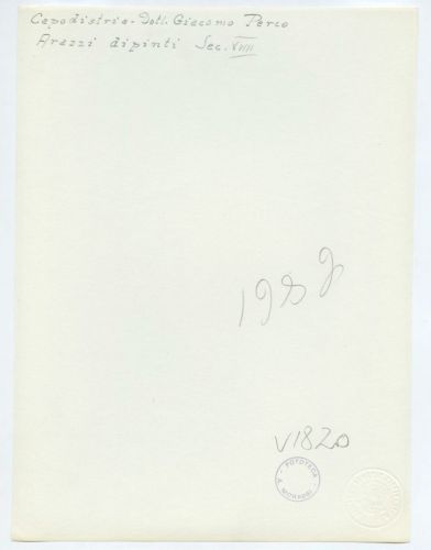 - ISCRIZIONI supporto primario: verso: in alto al centro - Capodistria - Dr. Giacomo Perco/ Arazzi dipinti - Sec. XVIII - a matita -
