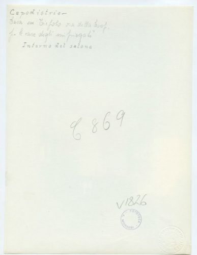 - ISCRIZIONI supporto primario: verso: in alto al centro - Capodistria/ Casa ex Tiepolo ora della Coop./ p. le case degli impiegati/ Interno del salone - a matita -