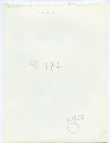 - ISCRIZIONI supporto primario: verso: in alto al centro - Capodistria - Convento dei P.P. Capuccini/ Cortile - a matita -