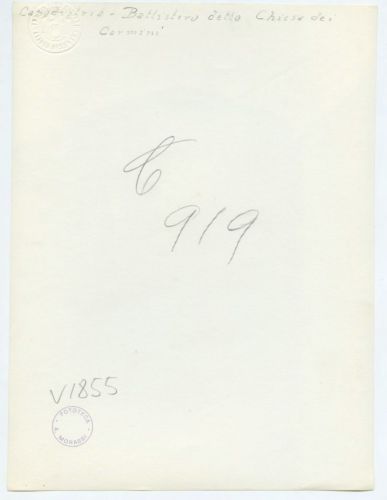 - ISCRIZIONI supporto primario: verso: in alto al centro - Capodistria - Battistero detto Chiesa dei/ Carmini - a matita -