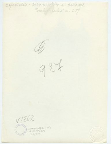 - ISCRIZIONI supporto primario: verso: in alto al centro - Capodistria - Tabernacoletto in Calle del/ Teatro vecchio n. 207 - a matita -
