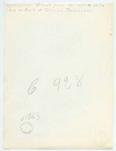 - ISCRIZIONI supporto primario: verso: in basso al centro - Capodistria - Vera da pozzo nel cortile della/ casa ex Conte de' Totto ora Predonzani - a matita -