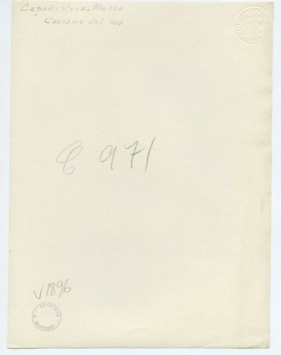 - ISCRIZIONI supporto primario: verso: a sinistra - Capodistria - Museo/ Cassone del 400 - a matita -