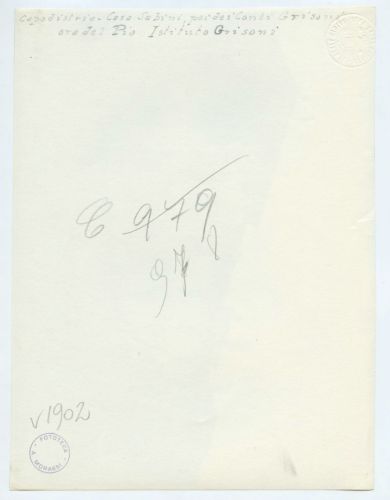 - ISCRIZIONI supporto primario: verso: a sinistra - Capodistria - Casa Sabini, poi dei Conti Grisoni/ ora del Pio Istituto Grisoni - a matita -