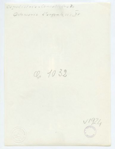 - ISCRIZIONI supporto primario: verso: in alto al centro - Capodistria - Concattedrale/ Ostensorio d'argento, sec. XV - a matita -