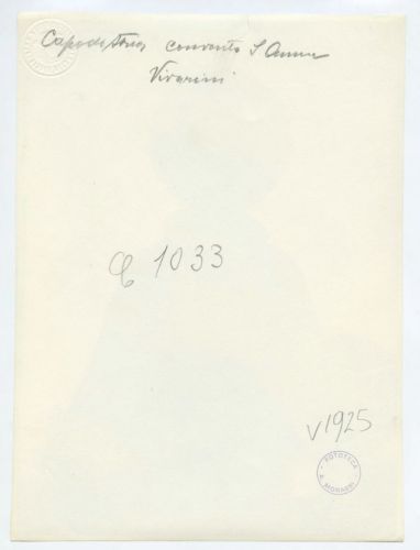 - ISCRIZIONI supporto primario: verso: in alto al centro - Capodistria convento S. Anna/ Vivarini - a matita -