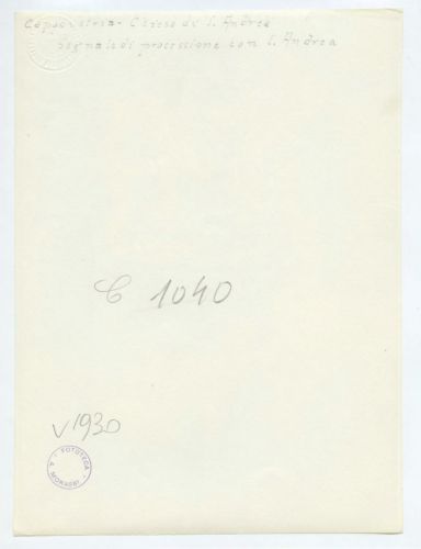 - ISCRIZIONI supporto primario: verso: in alto al centro - Capodistria - Chiesa di S. Andrea/ Segnale di processione con S. Andrea - a matita -
