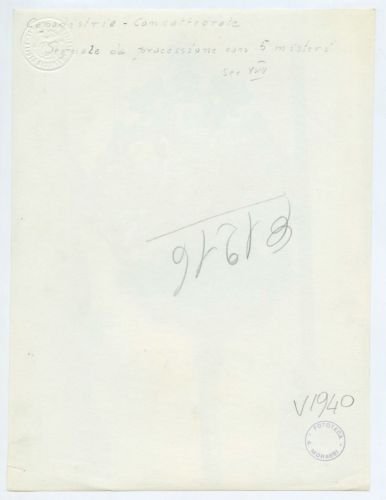 - ISCRIZIONI supporto primario: verso: in alto al centro - Capodistria - Concattedrale/ Segnale da processione con 5 misteri/ Sec. XVIII - a matita -
