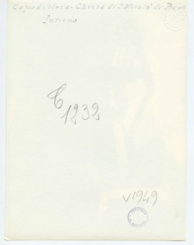 - ISCRIZIONI supporto primario: verso: a destra - Capodistria - Chiesa di S. Nicolò di Bari/ Interno - a matita -